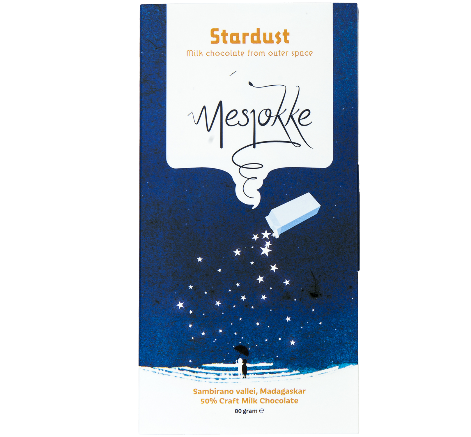 Deze intergalactisch lekkere melkchocolade van Mesjokke neemt je mee op een ruimtereis vol fruitige tonen, zachte karamel en een vleugje zeezout. Gemaakt in Utrecht met bonen uit de Sambirano-vallei (Madagaskar), Arenga palmsuiker en een flinke dosis rock-‘n-roll. Denk aan ambacht, precisie en een tikje attitude. Precies wat je verwacht van The Chocolate Explorers.